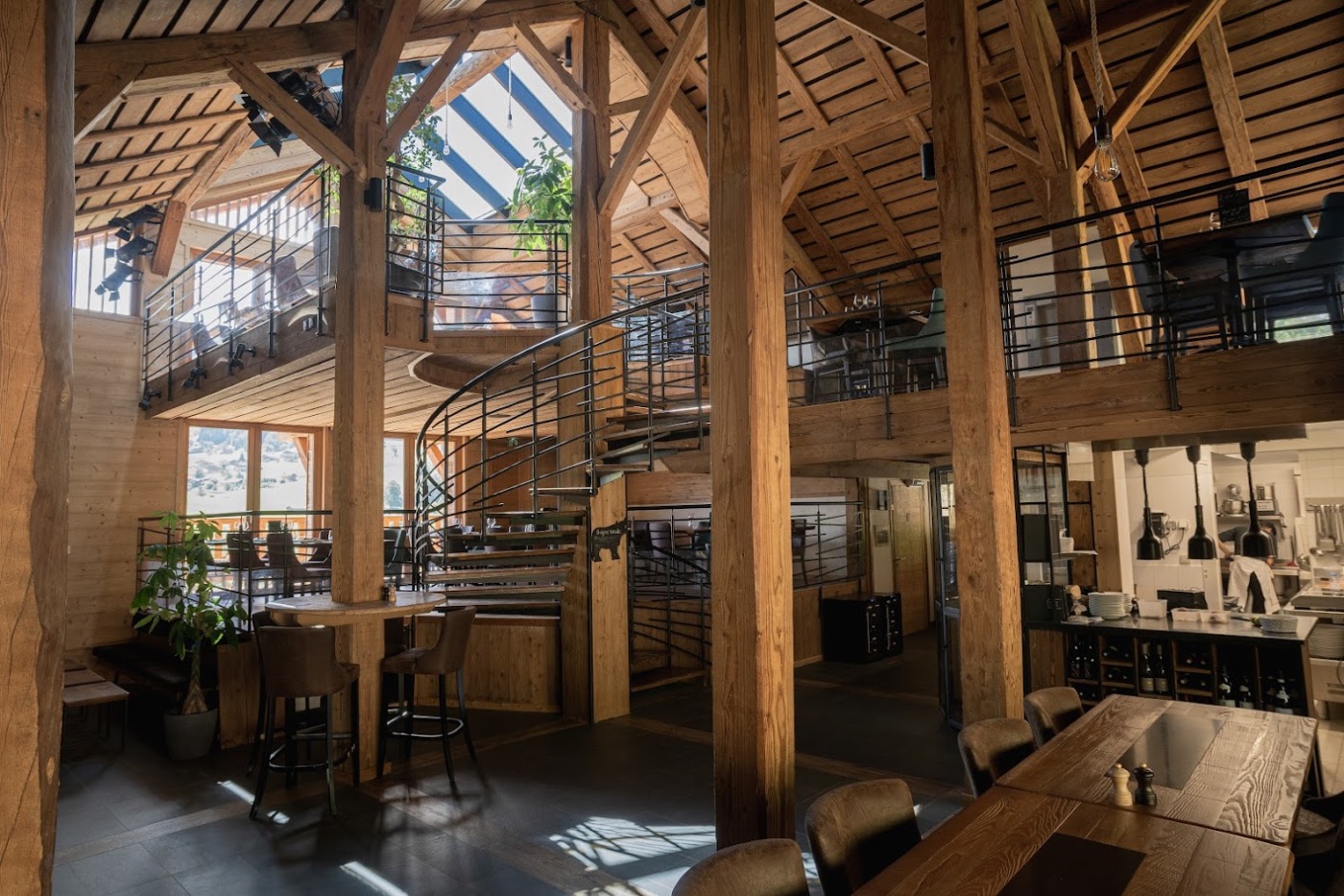Récompensé par le Gault & Millau, notre restaurant compte environ 60 couverts modulables. Chaque salle donne accès à une terrasse avec vue imprenable sur le Mont-Blanc. Bois brut, métal, pièces uniques… L’esprit biker est dans les détails.
